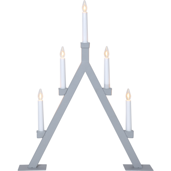 Oliver är en adventsljusstake i grå metall. 5 ljuskällor lyser stämningsfullt och skapar en fin julstämning i hemmet eller i den offentliga miljö. Ljuskällan är en led lampa med soft glow filament.