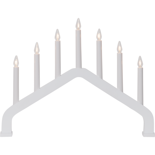 Vit träljusstake i stilren och enkel form med sju ljus för inomhusbruk.